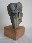 2010Beeld gemaakt van speksteen. Aan beide zijdes van de steen staan 2 gezichten. Het tussenstuk is ruw gelaten. Zie ook de andere foto (zonder titel 2) voor het zijaanzicht.